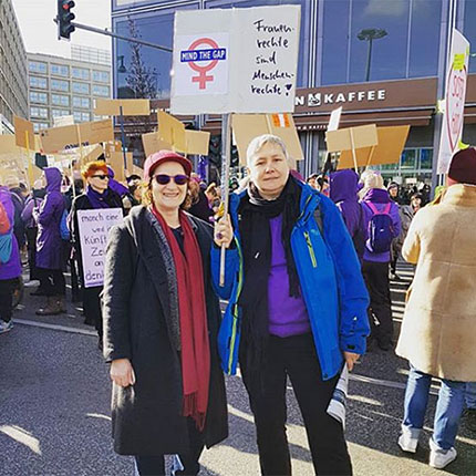 Gemeinsam mit zehntausenden Berliner*innen gehen auch die FCZB-Mitarbeiterinnen auf die Straße, um für Frauenrechte zu kämpfen, für gerechte Bezahlung, für Selbstbestimmung, für das Recht auf Abtreibung und gegen Gewalt.