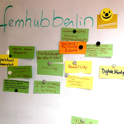 Zum ersten Mal heißt es #femhubberlin. „Hub“ bedeutet ja Knotenpunkt oder zentraler Umschlagplatz. Denn auch das ist einer unserer Schwerpunkte – ein Knotenpunkt für Berliner Frauen* und Frauen*projekte zu sein und gemeinsam mit ihnen ein Netzwerk für Frauen und digitale Bildung im Berliner Raum aufzubauen.