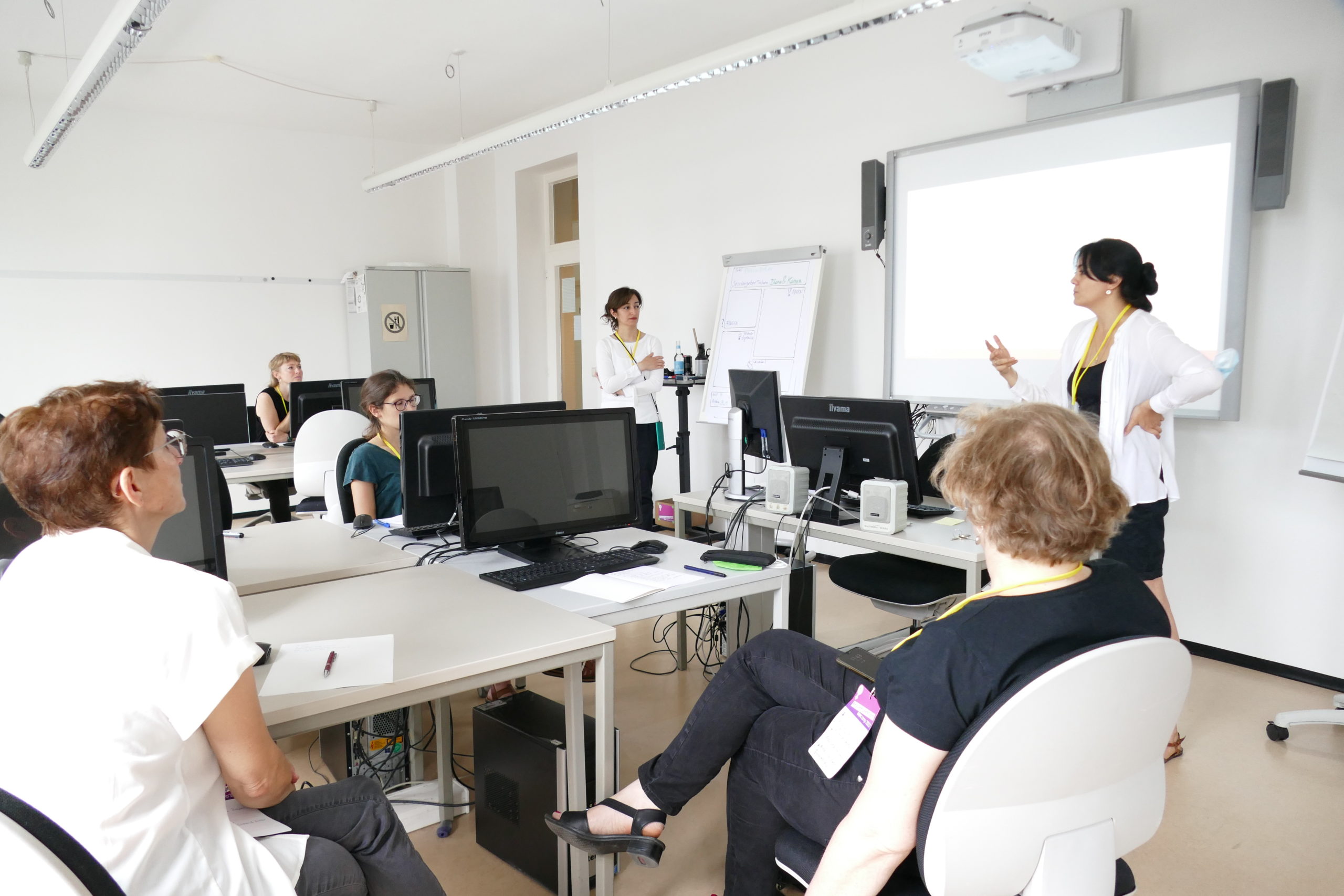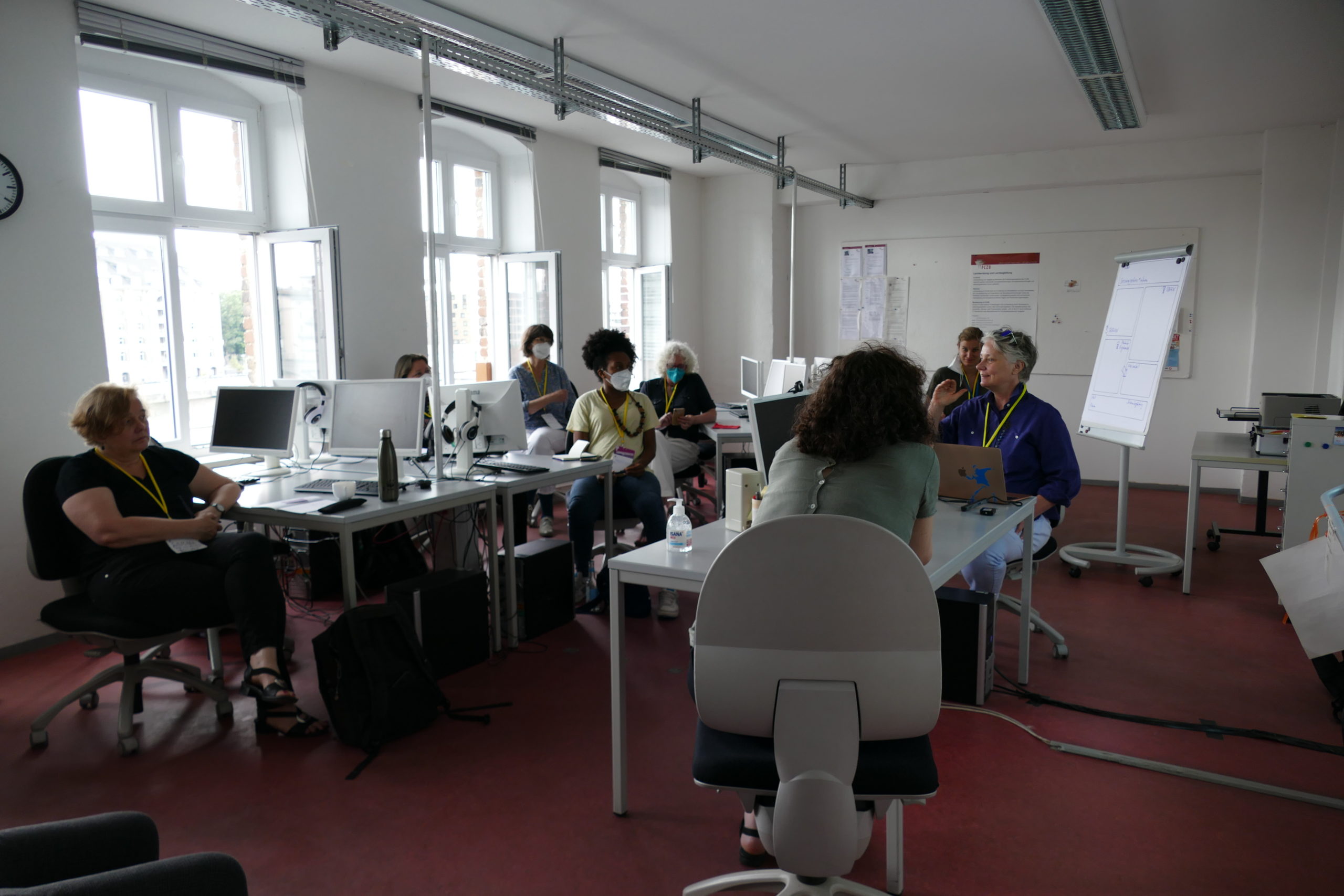 Der Geist des Barcamps lebt an diesem Sommertag im FrauenComputerZentrumBerlin e.V.: Wer hätte morgens auf dem Weg ins FCZB gedacht, dass wir am Abend sensibilisiert sein würden für die Tücken von AirTags, dass wir um die Wette gegendert oder über feministischen Widerstand in Smart Citys diskutiert haben würden?