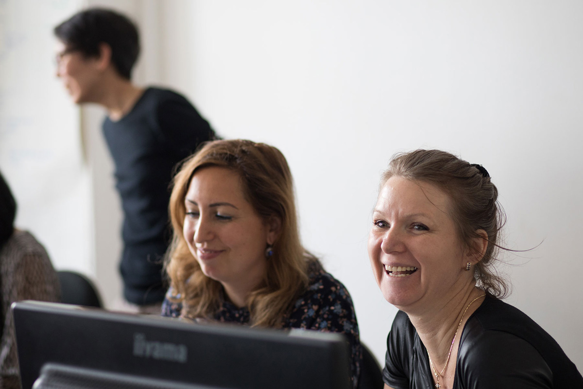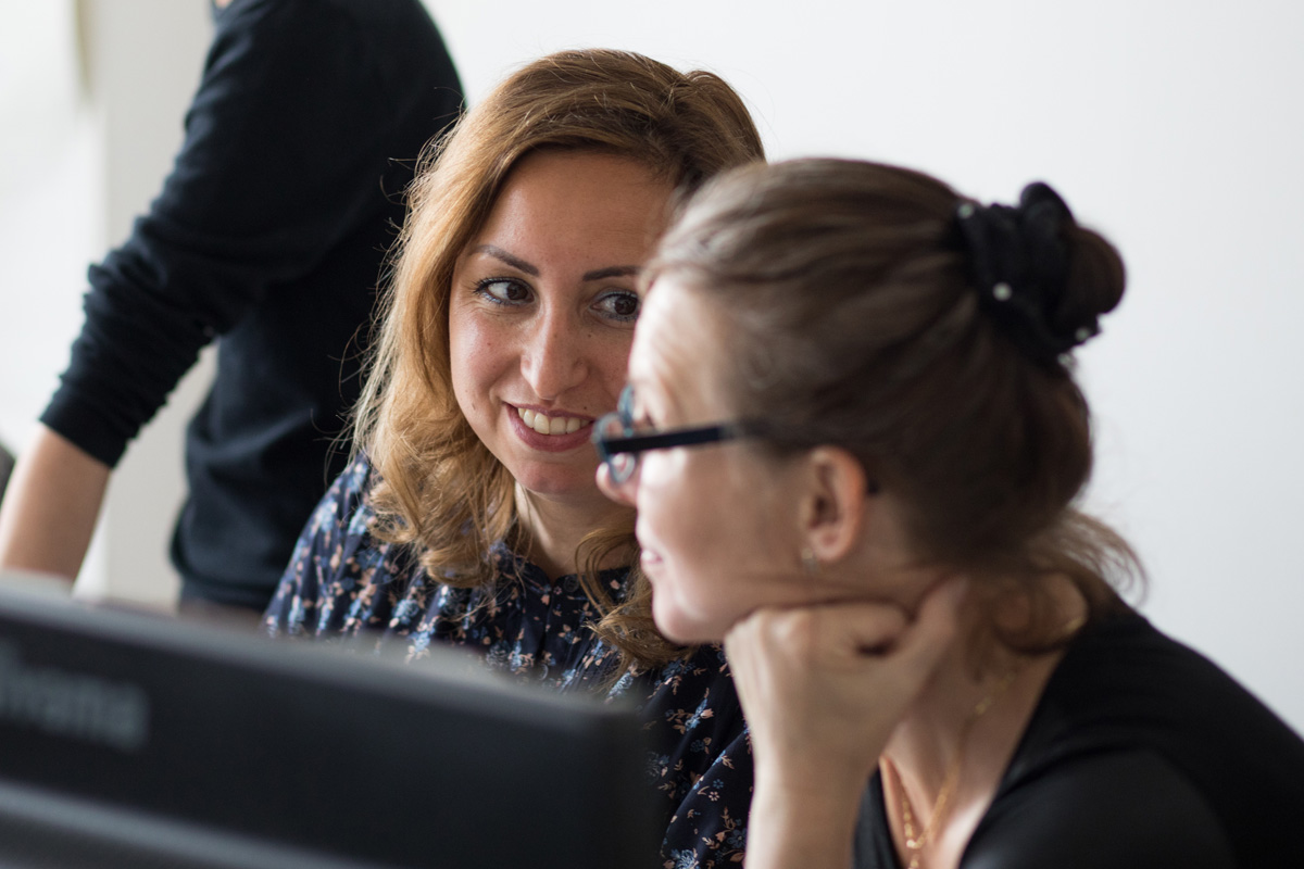 In der zwölfwöchigen Weiterbildung werden die Qualifizierungsbereiche verknüpft und die Lerninhalte parallel erarbeitet: Die Frauen erkennen ihr persönliches Potenzial UND orientieren sich beruflich UND erweitern zugleich ihre deutschen Sprachkenntnisse und ihr IT-Wissen.