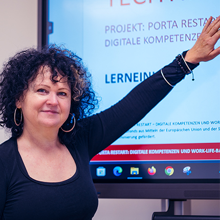 Das ist noch nicht alles im Projekt PORTA: Im Angebot Online Arbeiten kannst du deine Kenntnisse weiter ausbauen. Bei Kreativ im Netz lernst du, Websites zu gestalten und zu aktualisieren. In der Smartphone-Werkstatt gehts darum, wie du dein Smartphone sicher und effektiv nutzt. Und im Rahmen eines Angebots zur beruflichen Orientierung kannst du an Themen rund um Bewerbung und Wiedereinstieg arbeiten.